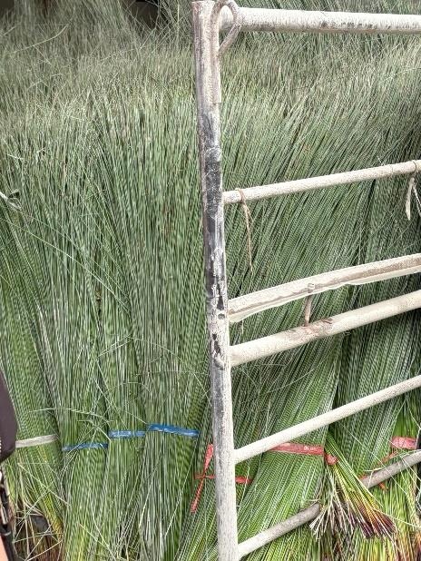 収穫後イ草を乾燥から守る、変色を防ぐ為に染土と呼ばれる泥でイ草を染める「泥染め」と呼ばれる工程があります。