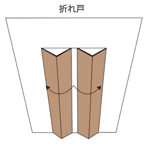 折れ戸とは、扉が折りたたまれるように開閉するドアを指します。