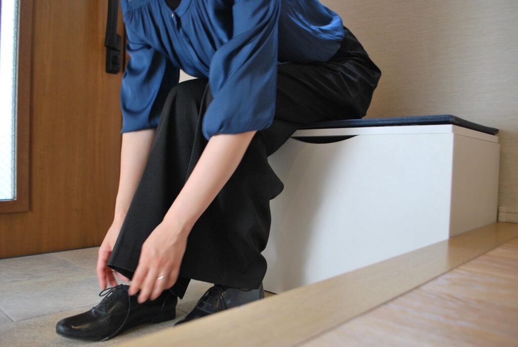 今の住宅は玄関の段差が低く、昔よりも座って靴を脱ぎ履きしづらい構造が増えています。