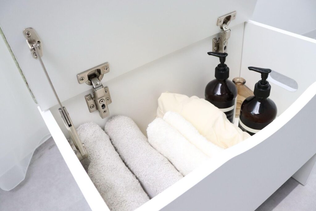 中にしまったものを取り出す時も、簡単にサッと取り出すことができるので、毎日は使わないけど、お出かけの前によく使うものや、急いで取り出したいものを入れておくのがおすすめです。