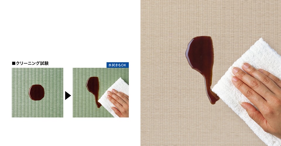 天然畳に比べて色褪せしにくく、耐久性に優れているところが最大の魅力。