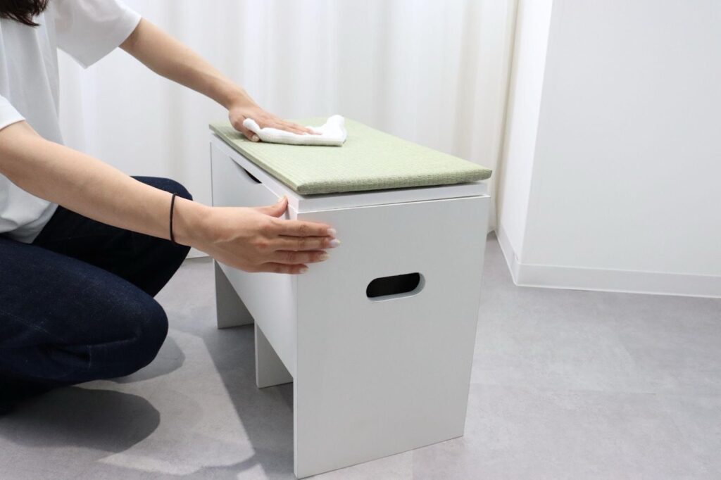 何かと汚れやすい玄関ですが、実はこの畳ベンチ、中性洗剤を使ってお掃除もできます。