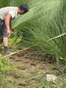 中国のイ草刈り取り作業